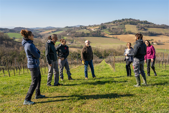 Mentre Marina preserva l’incanto del casale e l’accoglienza dell’agriturismo, la squadra di Agricola Arzilla lavora tra i filari per dare voce alla purezza delle nostre uve.
